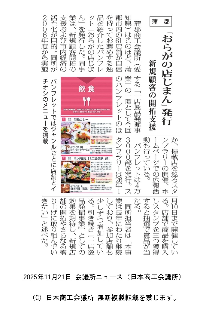 ▶日本商工会議所 会議所ニュース 2025年11月21日号