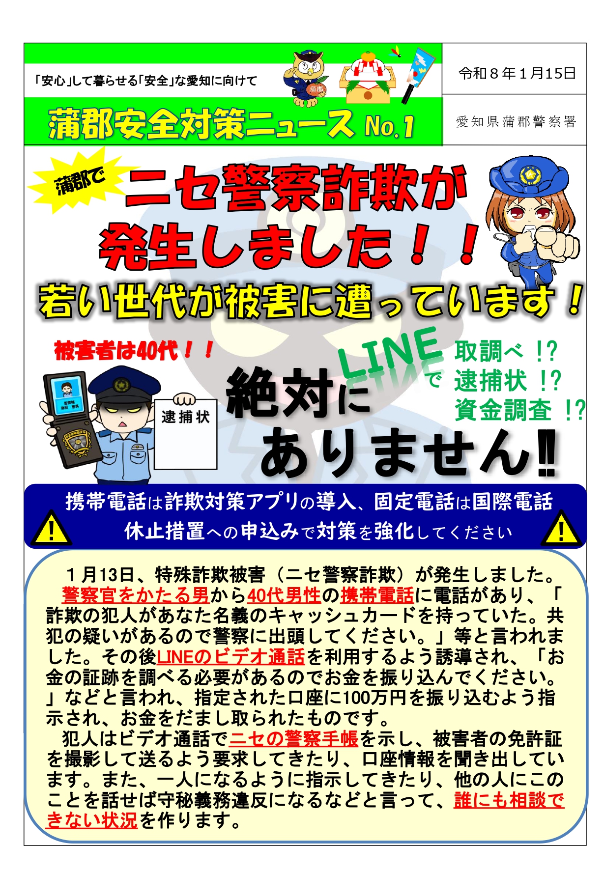 愛知県蒲郡警察署より、特殊詐欺の注意喚起です。